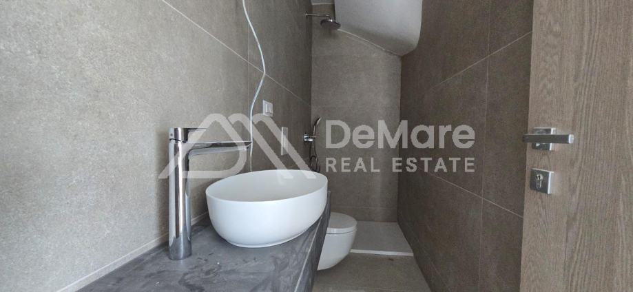 Iznad stana nalazi se prekrasna prostrana krovna terasa (75 m2), s pogledom na more i jadranske otoke.