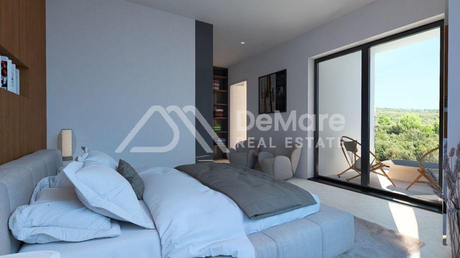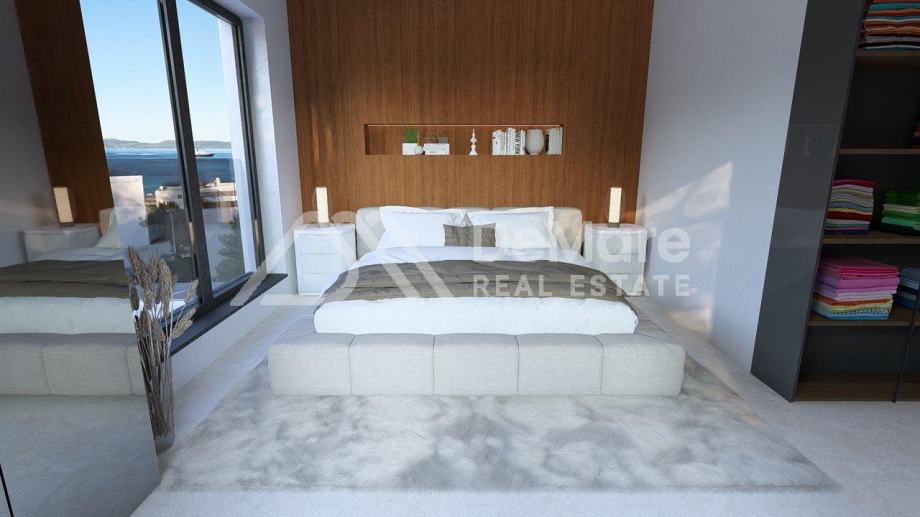 Iz dnevnog boravka se izlazi na prostranu natkrivenu terasu (39,45 m2), s pogledom na more, a master soba ima vlastitu terasu (4,45 m2).