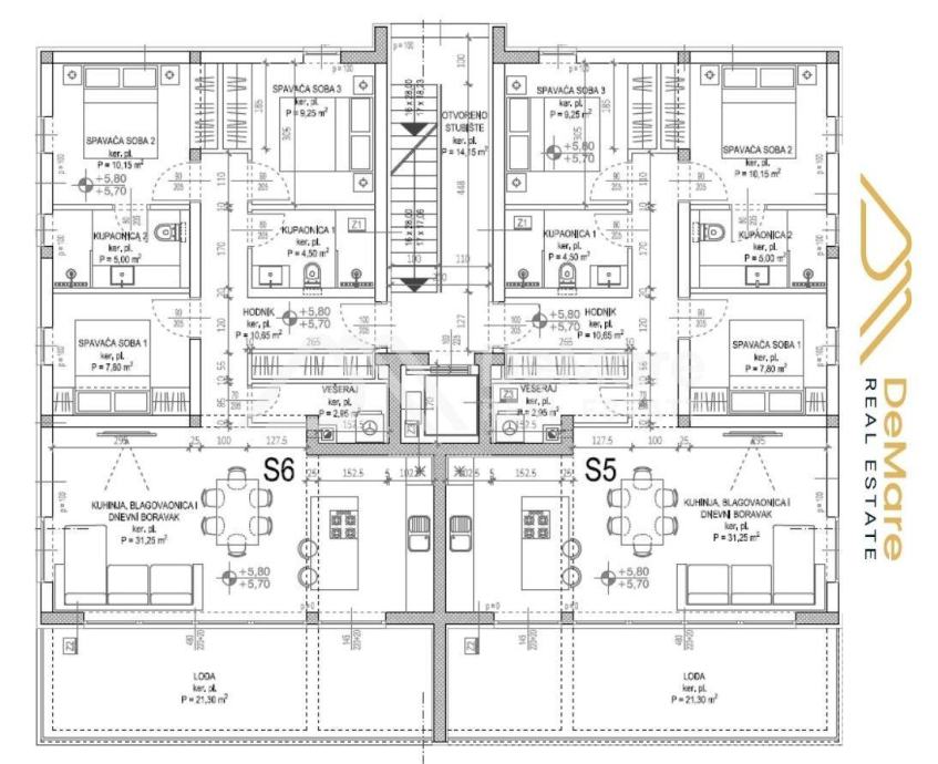 -- dvije kupaonice / 4,50 m2 i 5,00 m2 i