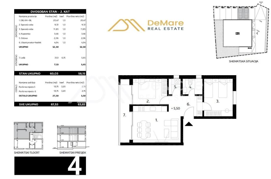 2.KAT- S4 - Stan s dvije spavaće sobe i lođom