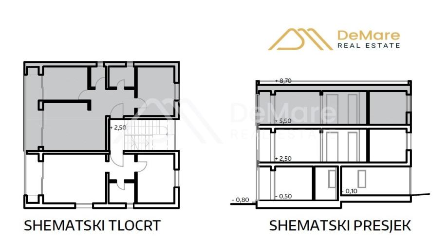 U prodaji je projekt novogradnje na odličnoj, mirnoj lokaciji, samo 150 m od mora, na području Dikla.