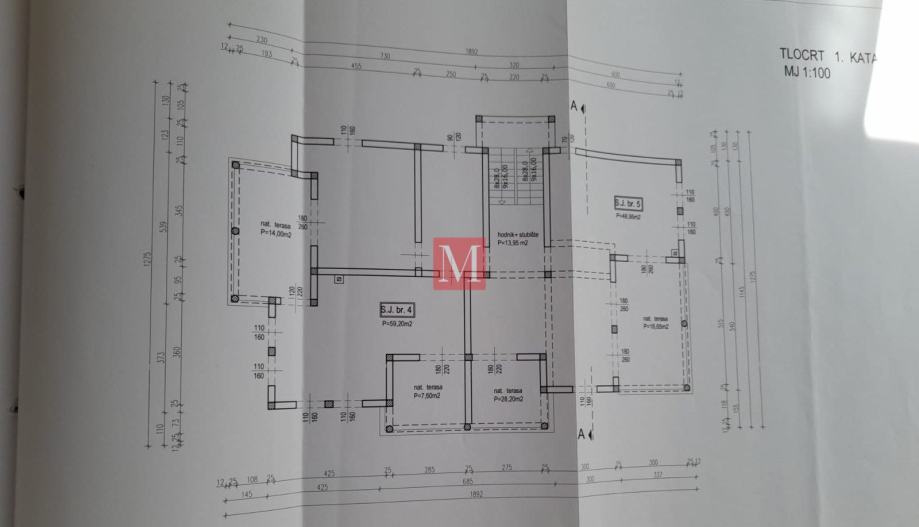 1. kat - bruto 167,64 m2 (stambene jedinice 4&5 - svakoj pripadaju po 3 terase)