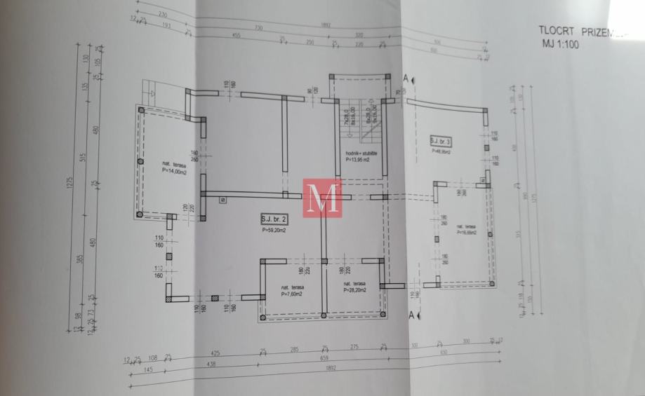prizemlje - bruto 167,64 m2 (stambene jedinice 2&3 - svakoj pripadaju po 3 terase)