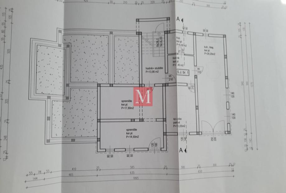 suteren - bruto 120,09 m2 (stambena jedinica 1 koja se sastoji od: 2 spremišta, spavaće sobe, hodnika, kupaonice i kuhinje s blagovaonicom)