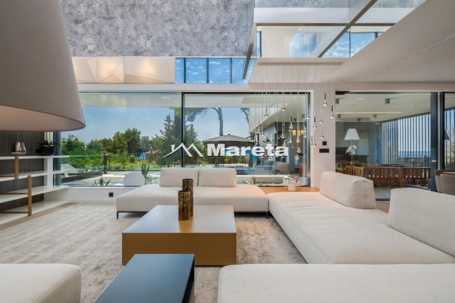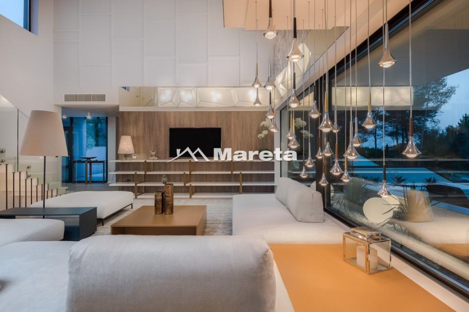 Ova luksuzno uređeno Villa ima 453 m2 na terenu od 1209m2. Villa se sastoji od 5 spavaćih soba koje su opremljene walk-in garderobom, smart TV-om i zvučnicima za upravljanje zvučnog sustava, sa 3 odvojena WC-a te 5 en-suite kupaonica od koje su dvije opremljene kadom, sa tuš kabinama. Kuhinja vile je u potpunosti opremljena u sklopu sa blagovaonicom, koja je spojena sa konobom. U moderno uređenom dnevnom boravku opremljenom Hi Fi sustavom i Smart TV-om možete uživati u odmoru sa društvom ili obitelji nakon aktivnog dana, ili ako radite i putujete, u sklopu dnevnog boravka se nalazi radna soba koja će Vam osigurati mirnu radnu atmosferu. U villi se nalazi teretana, sauna, jacuzzi i garaža za dva automobila. U dvorištu se nalazi prekrasan bazen od 48 m2 opremljen mlaznicama za grijanje i hlađenje, okružen ležaljkama. Cijela Villa je ograđena zidom, osiguravajući potpunu privatnost.