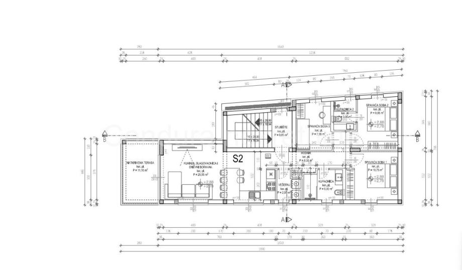 Posebna prednost ove nekretnine je prostrana krovna terasa od 47,4 m², idealna za opuštanje i druženje na otvorenom, s mogućnošću ugradnje jacuzzija, ljetne kuhinje ili sunčališta. Stanu također pripadaju dva parkirna mjesta i spremište, čime ukupna korisna površina iznosi 120,75 m².