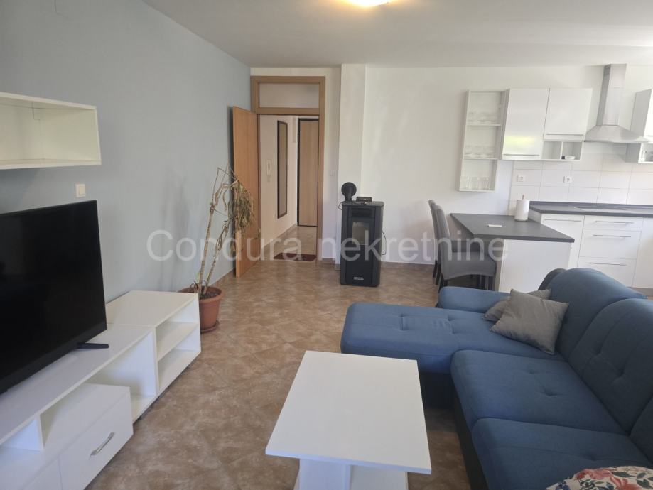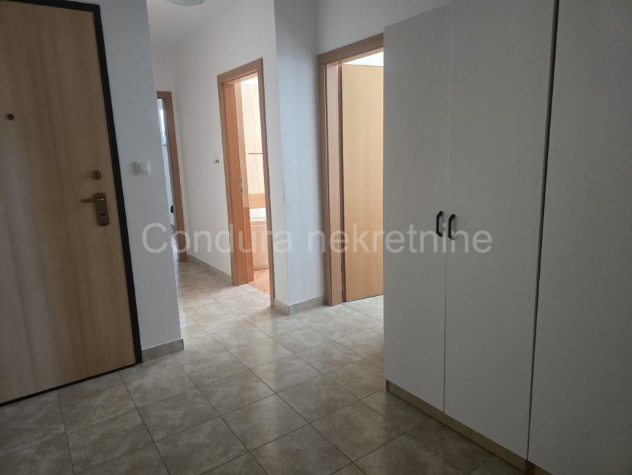 Stan se sastoji od ulaznog prostora, hodnika, dvije spavaće sobe, kupaonice s WC-om te prostranog open-space dnevnog boravka povezanog s kuhinjom i blagovaonicom.