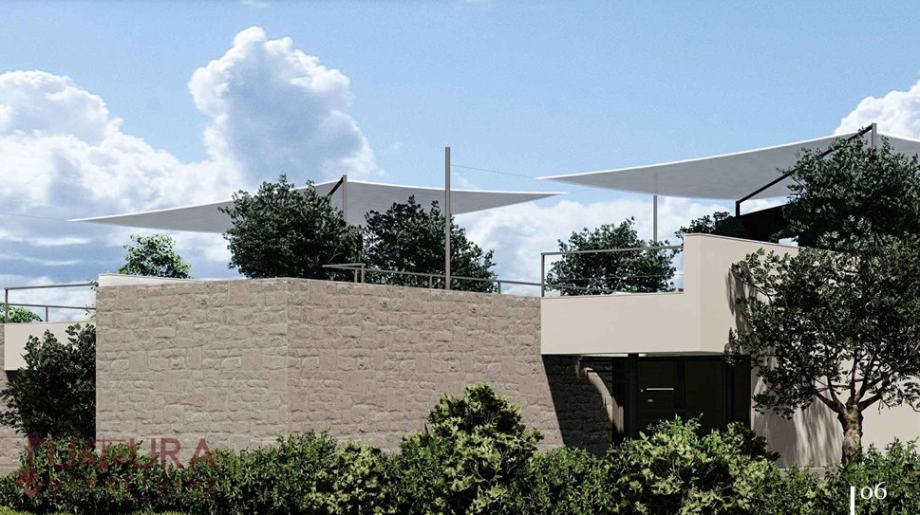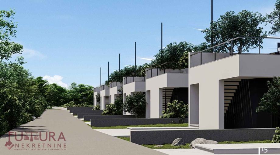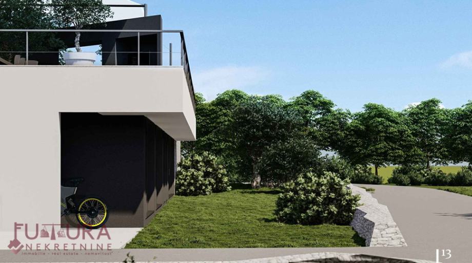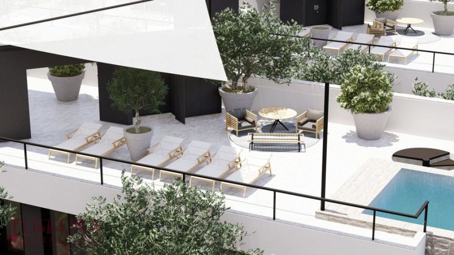 Posjeduje dva parkirna mjesta i krovnu terasu na kojoj je bazen.