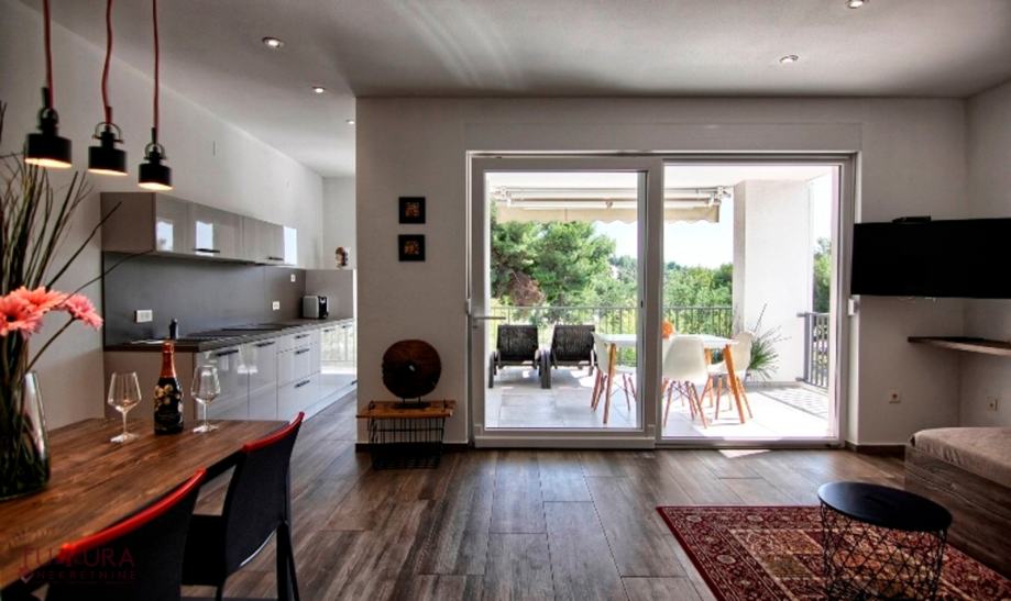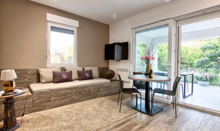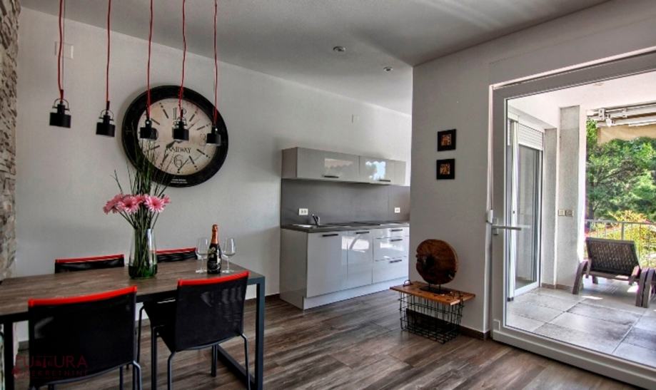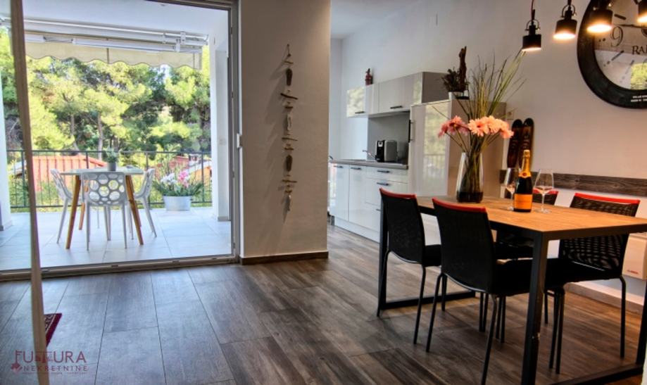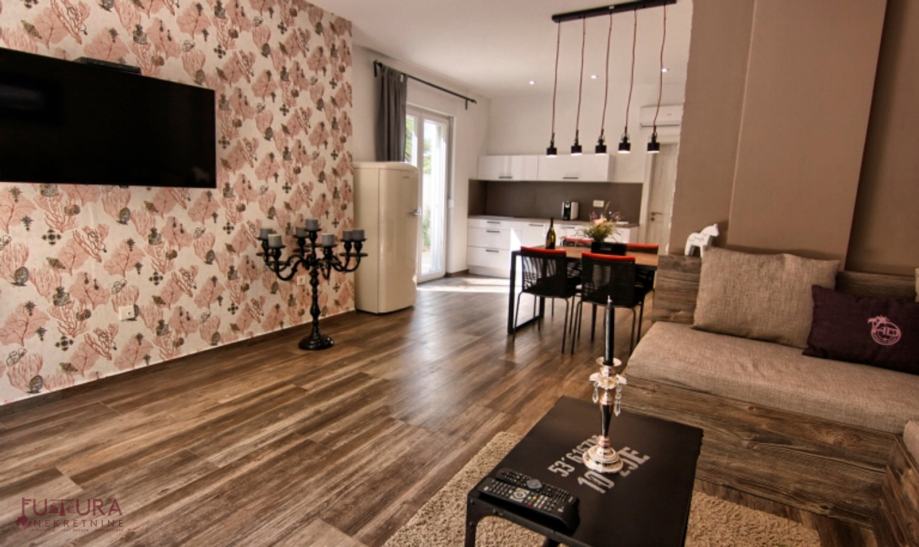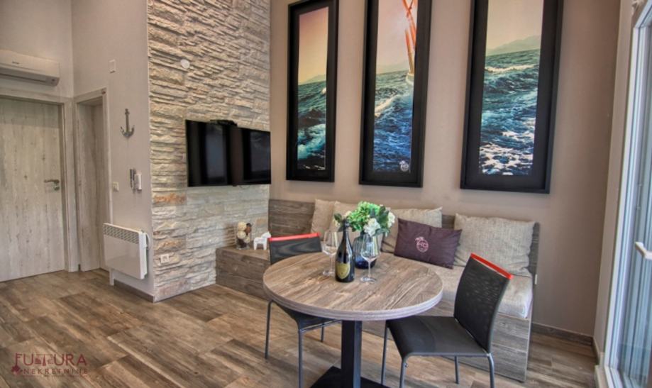 Nalazi se na izvrsnoj lokaciji 40 m udaljena od mora i prekrasne plaže, blizina restorana, kafića te svih sadržaja potrebnih za ugodan i miran odmor.