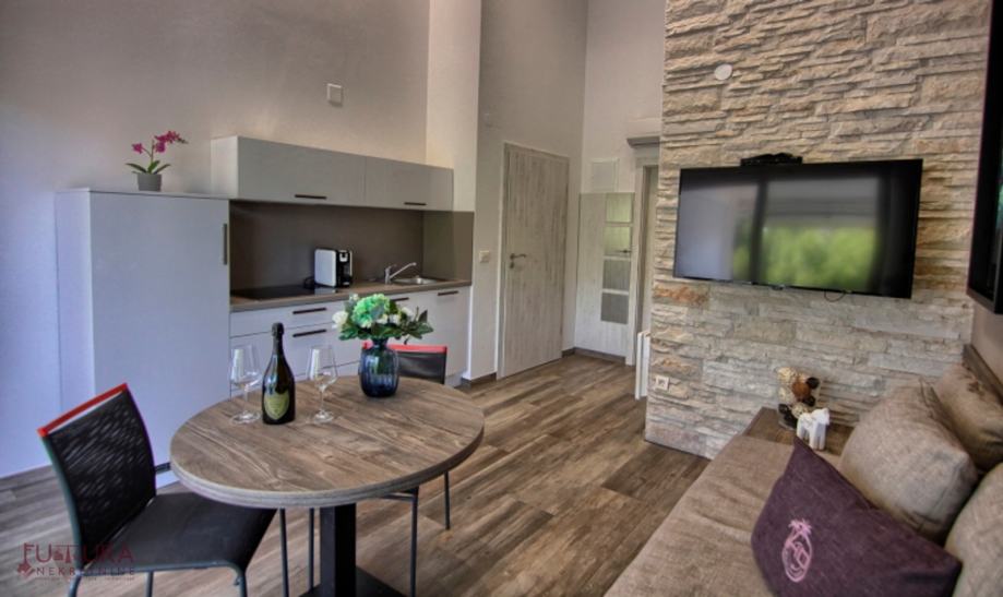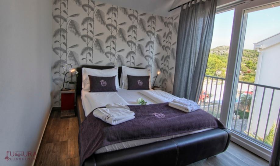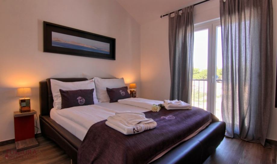 Kuća 1 - pet apartmana: jedan četverosobni sa tri kupaone, jedan dvosobni i tri jednosobna.