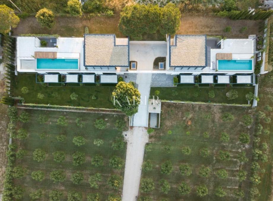 Ukupna korisna površina vila iznosi 655 m². Veća vila, površine 430 m², sastoji se od pet prostranih spavaćih soba s vlastitim kupaonicama, dodatna dva WC-a, potpuno opremljene kuhinje, prostranog dnevnog boravka, blagovaonice, saune, turske kupelji, te bazena površine 39 m² s hidromasažnim mlaznicama. Manja vila, površine 225 m², nudi četiri spavaće sobe s en-suite kupaonicama, dodatni WC, modernu kuhinju, dnevni boravak, saunu, tursku kupelj i bazen od 30 m² s hidromasažnim mlaznicama.