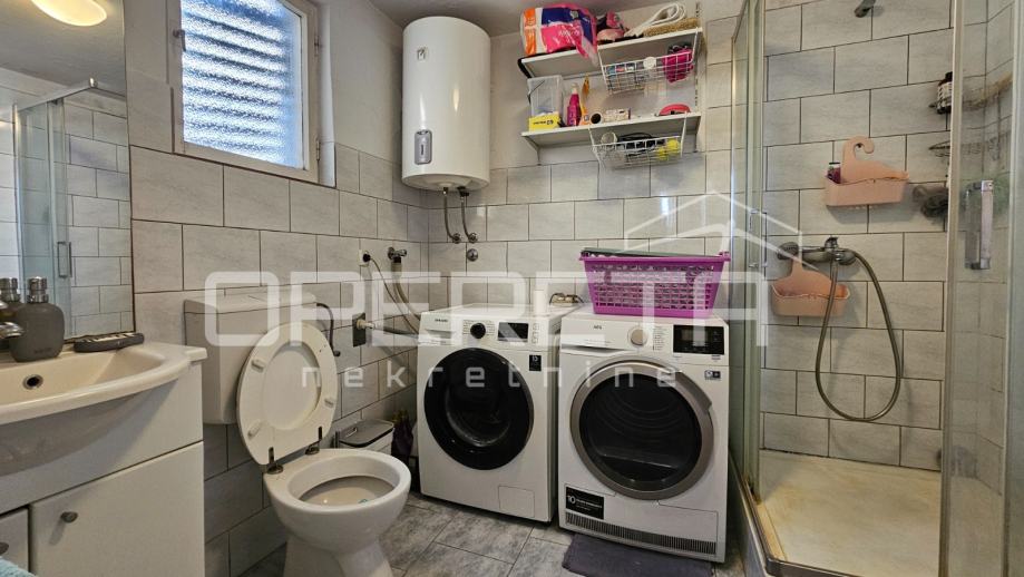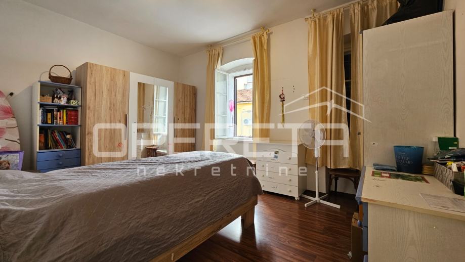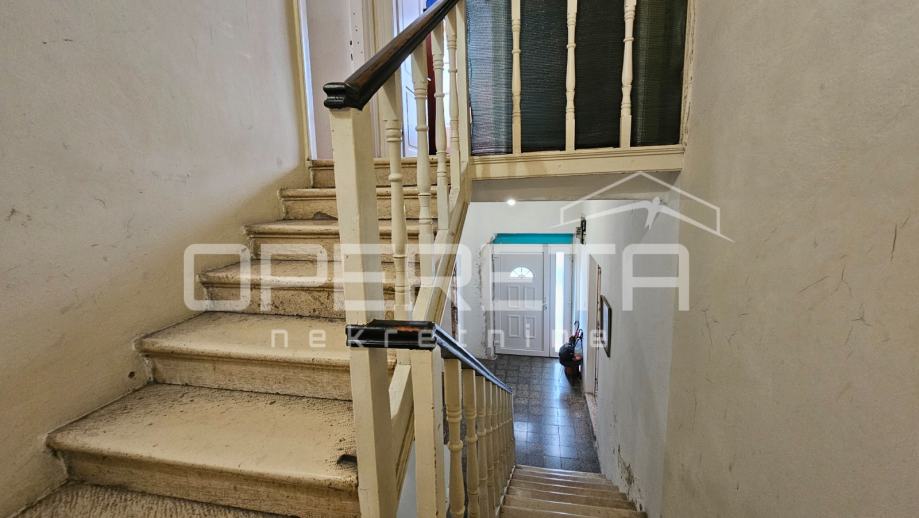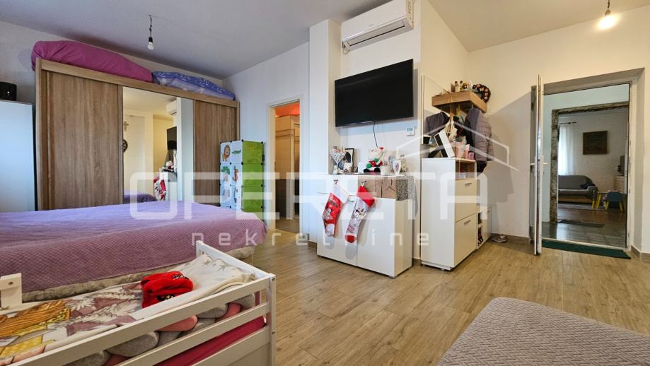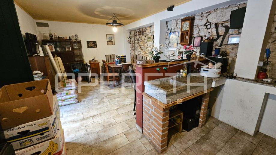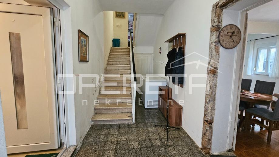 Kuća se prostire na dvije etaže, od kojih svaka ima približno 110 m², pružajući ukupno 220 m² stambenog prostora. Prizemlje se sastoji od velikog dnevnog boravka, prostrane kuhinje i jedne potpuno renovirane sobe s vlastitom kupaonicom, dok se na katu nalazi šest spavaćih soba, idealnih za veću obitelj ili prilagodbu za turistički smještaj. Unutrašnjost kuće odlikuju visoki stropovi, koji dodatno naglašavaju prostranost i daju prostoru dozu elegancije te podsjećaju na povijesni karakter ove jedinstvene nekretnine.