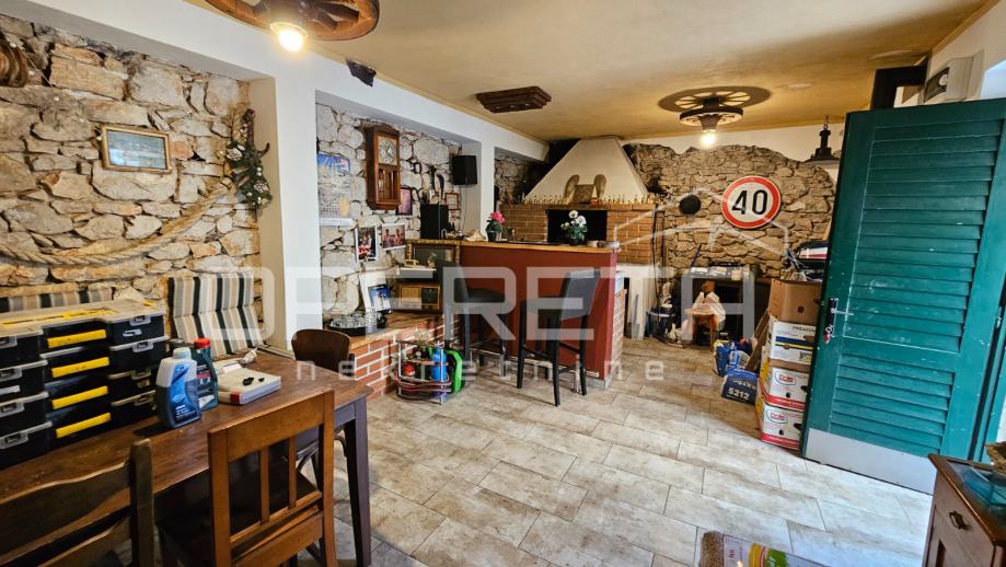 Dvorište, zajedno s tradicionalnom dalmatinskom konobom, obuhvaća ukupno 150 m². Konoba u autentičnom dalmatinskom stilu predstavlja savršeno mjesto za opuštanje i uživanje u mediteranskom ambijentu, bilo za privatne trenutke ili druženja s obitelji i prijateljima. Kuća i konoba izgrađene su prije 1968. godine, te se kao takve smatraju izgrađene na temelju pravomoćne građevinske dozvole.