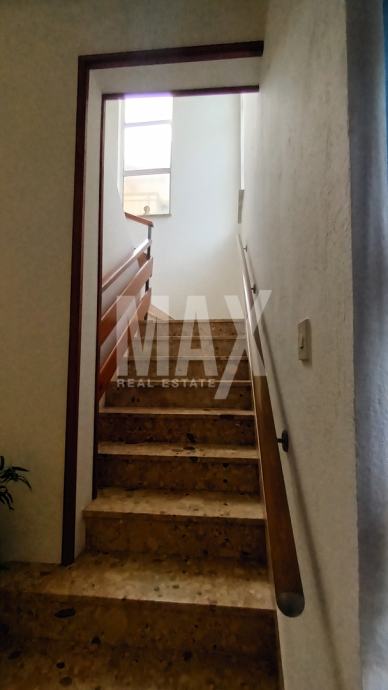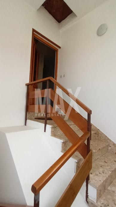 Unutarnjim stepenicama dolazimo do trosobnog stana (cca 110m2), koji se sastoji od hodnika,kupaonice,tri spavaće sobe,kuhinje s blagovaonom i dnevnim boravkom,ostave i dva balkona koja se orijentirana južno.