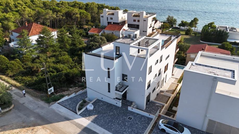 Zgrada je smještena na odličnoj lokaciji na samo stotinjak metara od mora, a grad Zadar je udaljen tek nekoliko kilometara, što ovu nekretninu čini idealnom za sve one koji žele biti na mirnoj lokaciji, ali i dalje u blizini većeg grada i svih sadržaja.