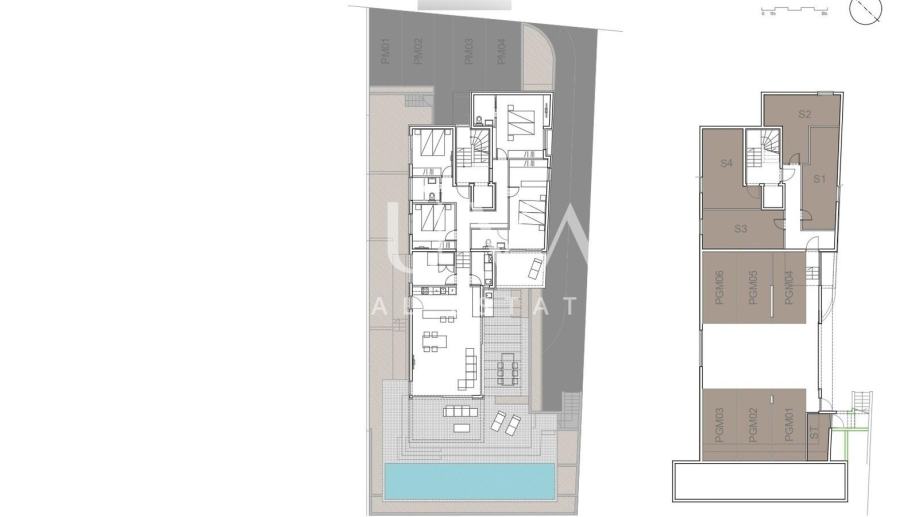 Stanu također pripada i jedno garažno parking mjesto u podzemnoj garaži, te jedno vansko parking mjesto, kao i dodatno spremište u podrumu zgrade.