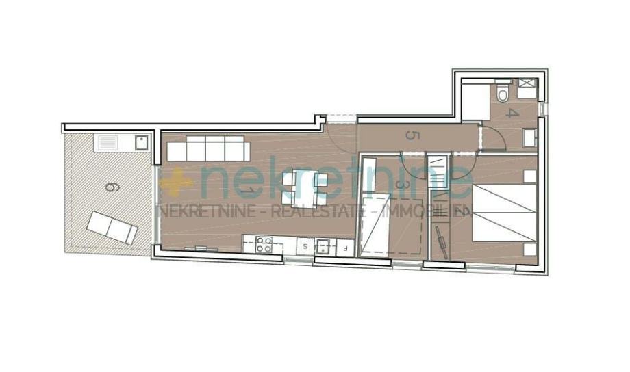Stan se prostire na funkcionalno raspoređenih neto stambenih 55,25 m2, a pri ulasku vas dočekuje prostrani hodnik koji vodi u elegantno uređeni dnevni boravak.