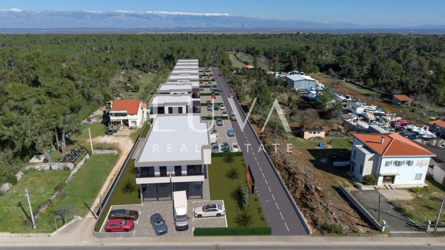 Raspored stana od 69.73m2 čine hodnik, kuhinja, blagovaonica, svijetli dnevni boravak s izlazom na prostranu terasu, dvije spavaće sobe i privatni vrt površine 24 m2. Uz stan dolaze i dva parkirna mjesta te postoji mogućnost izgradnje bazena uz nadoplatu. Do prekrasnog Jadranskog mora potrebno je svega 1.500 metara, što ovu nekretninu čini savršenim izborom za one koji žele uživati u mirnom okruženju uz more