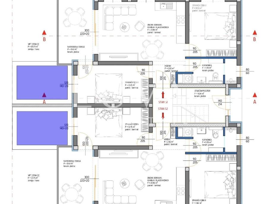 Raspored stana od 74,33m2 čine hodnik, kuhinja, blagovaonica, svijetli dnevni boravak s izlazom na prostranu terasu, dvije spavaće sobe i privatni vrt površine 70 m2. Uz stan dolaze i dva parkirna mjesta te postoji mogućnost izgradnje bazena uz nadoplatu. Do prekrasnog Jadranskog mora potrebno je svega 1.500 metara, što ovu nekretninu čini savršenim izborom za one koji žele uživati u mirnom okruženju uz more