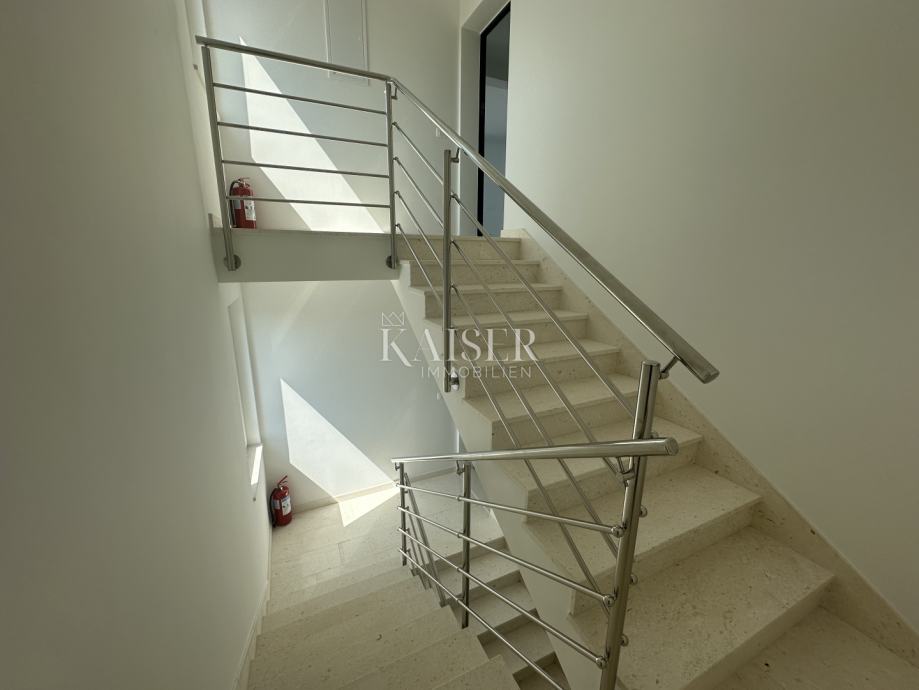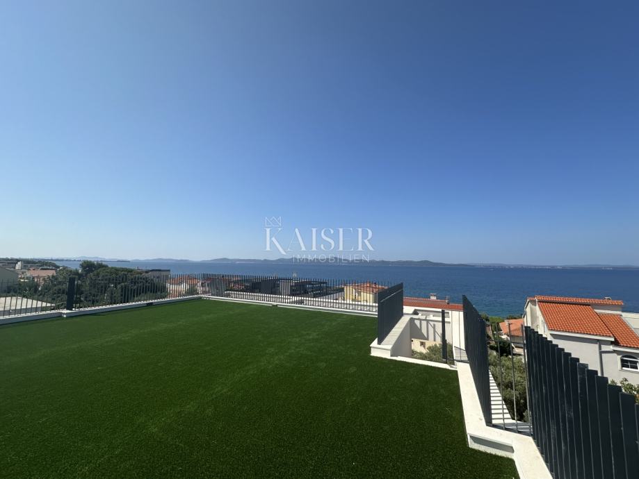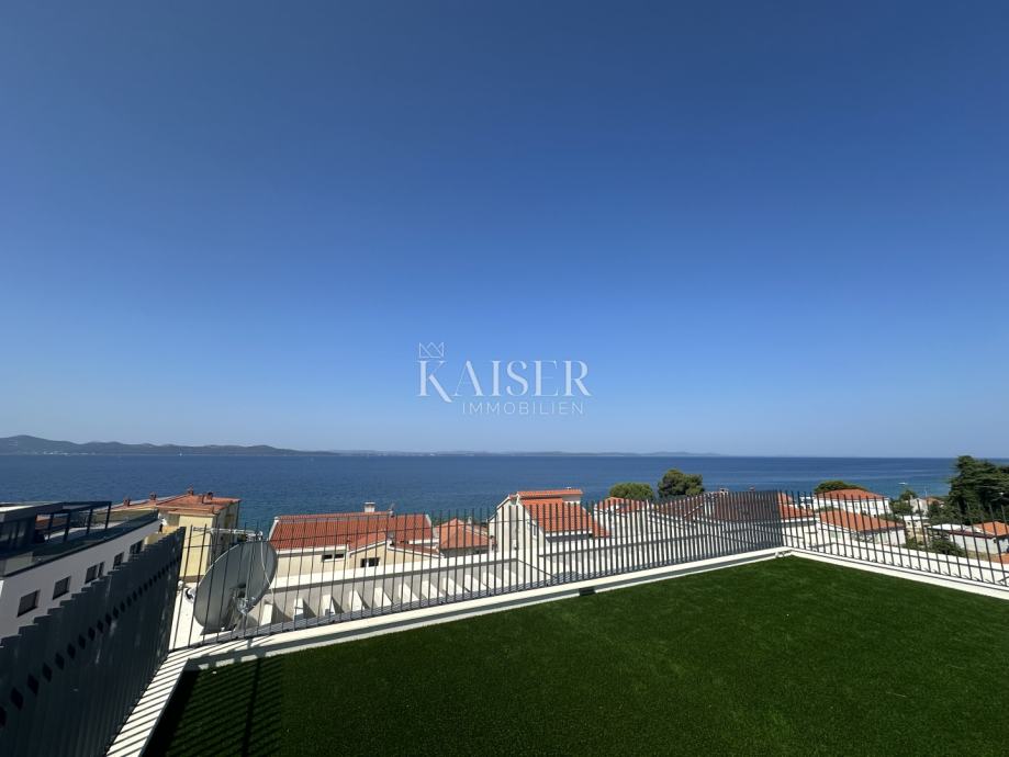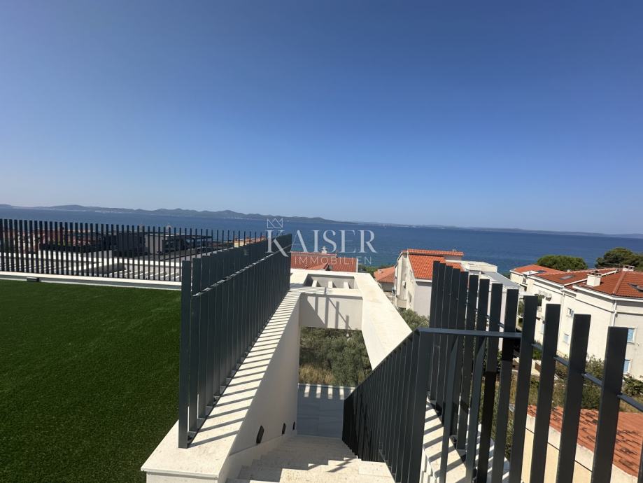 Kaiser Immobilien predstavlja ekskluzivan penthouse stan u modernoj zgradi u Kožinu, smješten svega 90 metara od mora, s impresivnom krovnom terasom površine 101 m² koja pruža panoramski pogled na more i zadarski arhipelag. Ova jedinstvena nekretnina nudi spoj luksuza, privatnosti i iznimne lokacije.