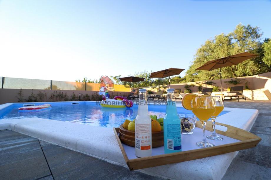 Sveukupna neto stambena površina kuće iznosi 259,80 m2 a površina bazena je 38m2.