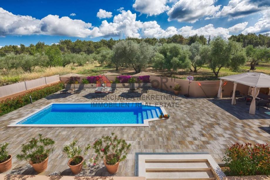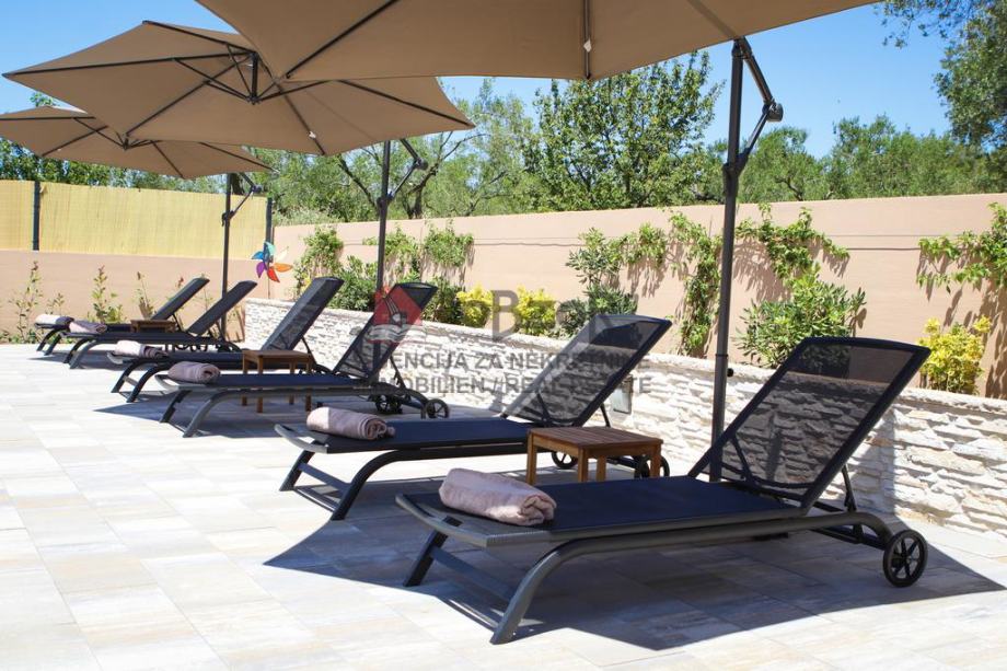 Sveukupna neto stambena površina kuće iznosi 259,80 m2 a površina bazena je 38m2.