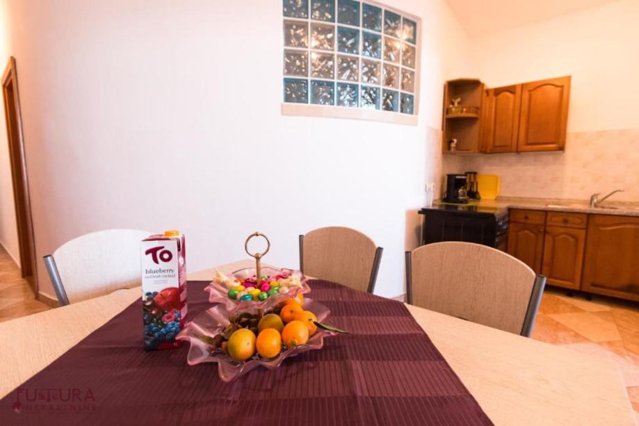 - apartman 70 m2: dvije spavaće sobe, dnevni boravak + kuhinja + blagovaona, kupaonica i terasa.