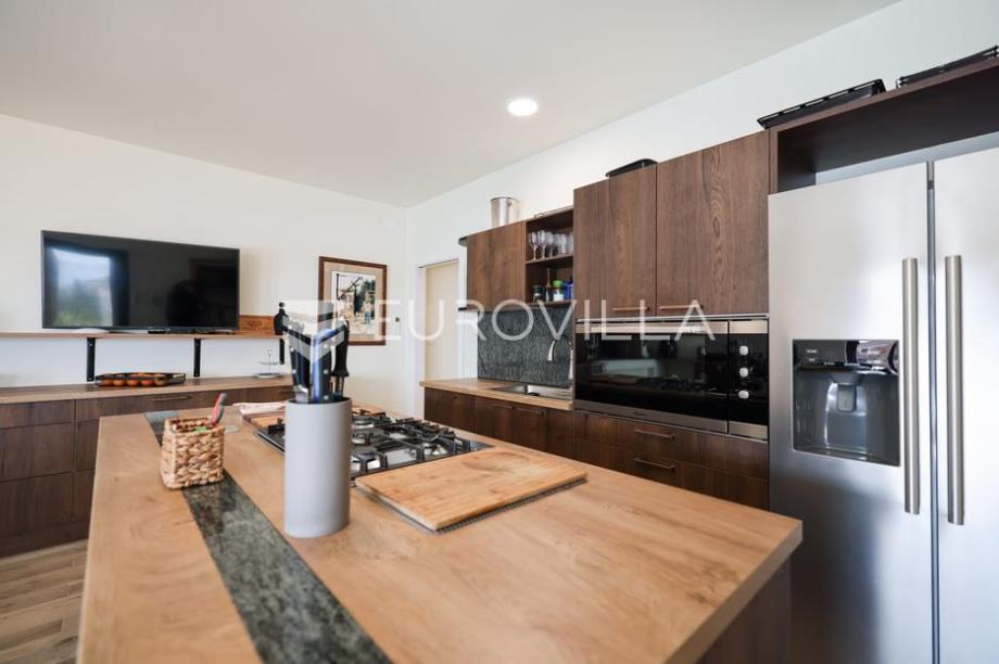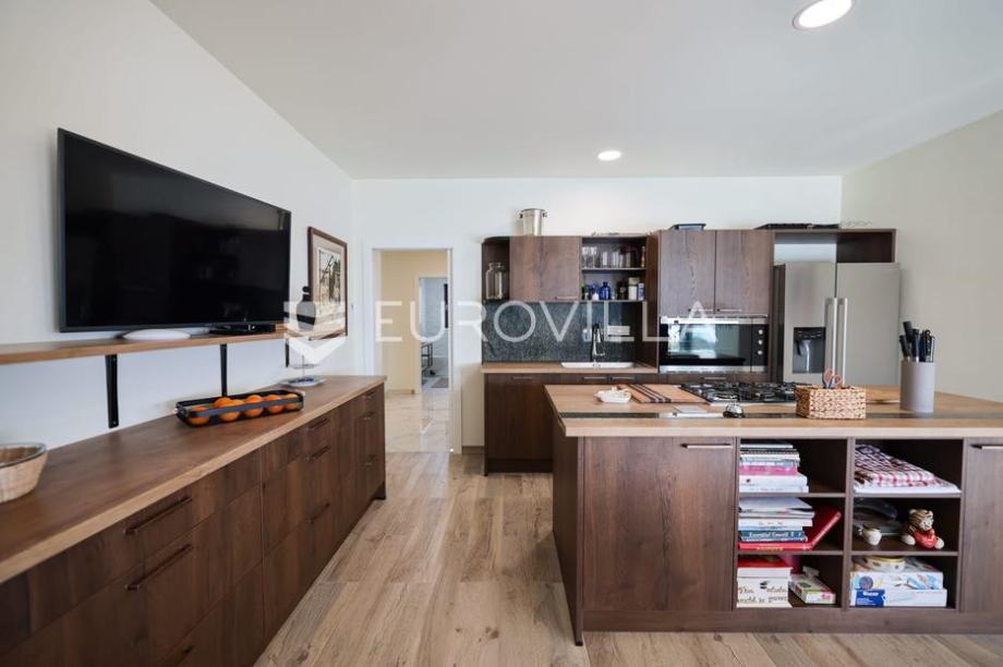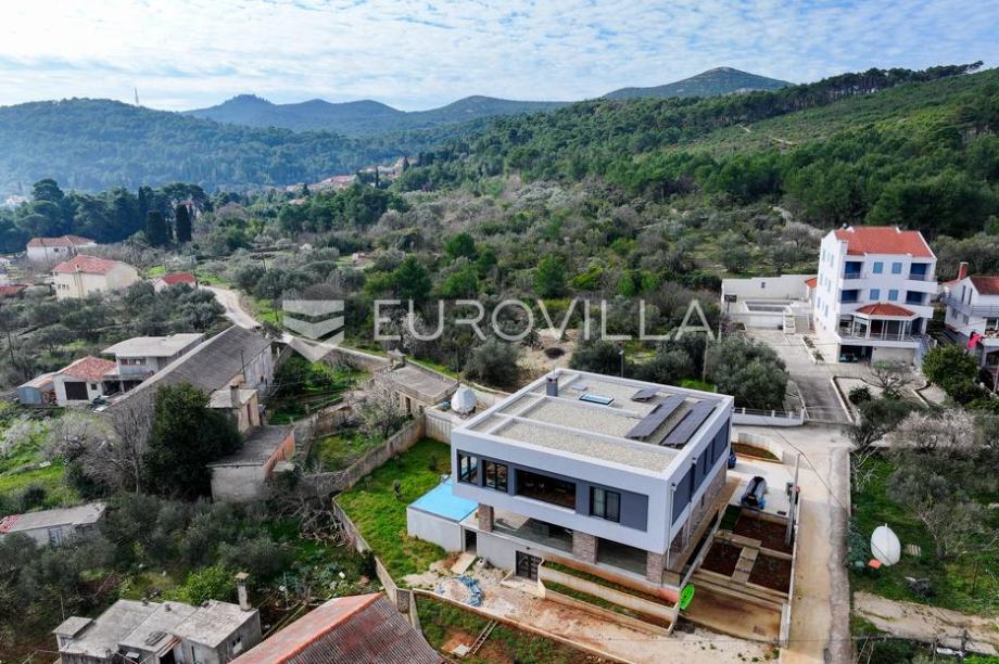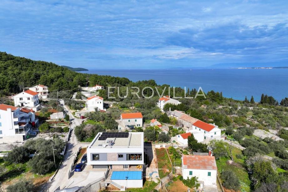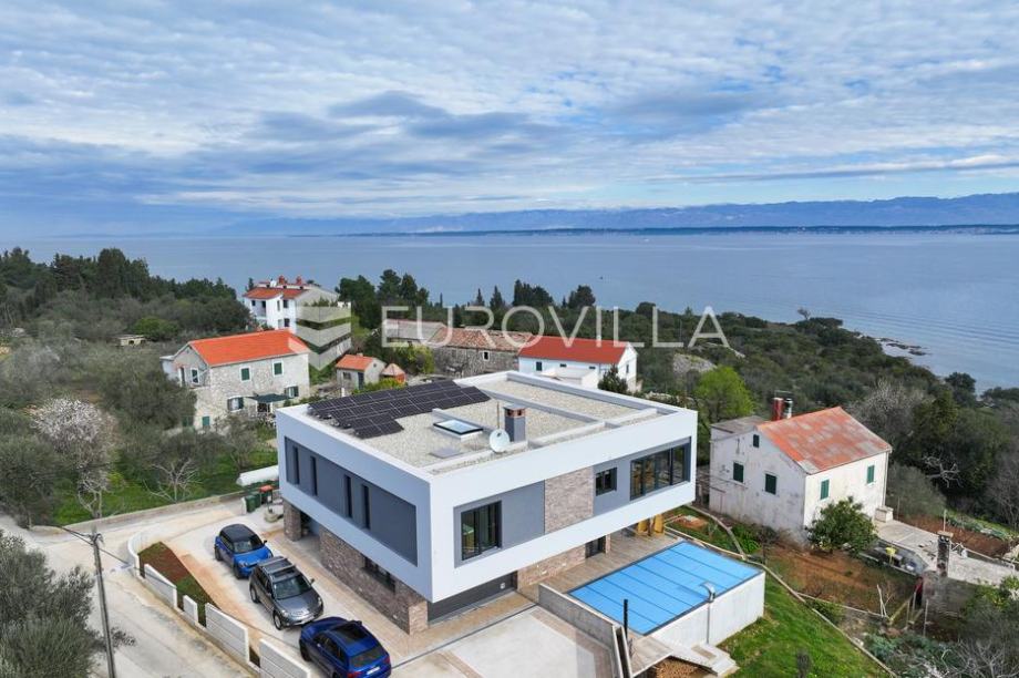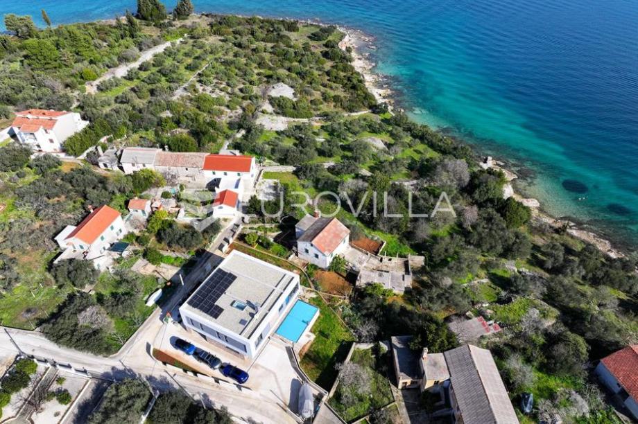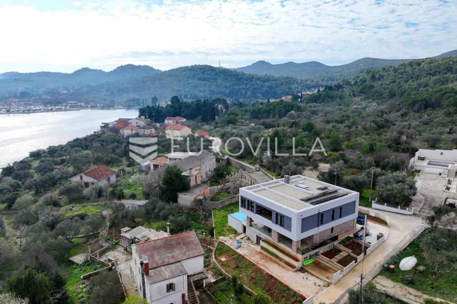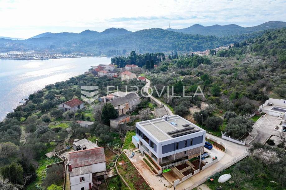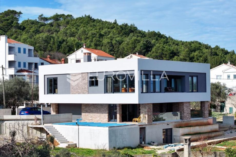 This unique designer villa is located on the island of Ugljan, in the town of Lukoran.It is spread over 1061 m2 of land.The ground floor consists of an entrance area, a guest bedroom, a bathroom, and a covered terrace of 60.4 m2. On the ground floor there is also a sauna, a summer kitchen with a...