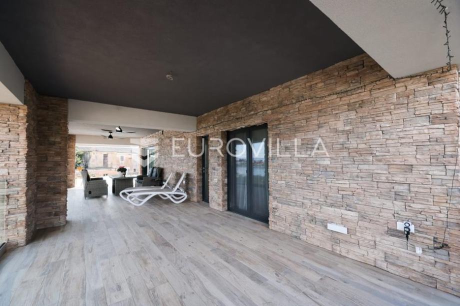 Ova jedinstvena dizajnerska vila smjestila se na otoku Ugljanu, u mjestu Lukoran.Prostire se na zemljištu površine 1061 m2.Prizemlje se sastoji od ulaznog prostora, gostinjske spavaće sobe, kupaonice, te natkrivene terase površine 60,4 m2. U prizemlju se nalazi i sauna, ljetna kuhinja s kominom...
