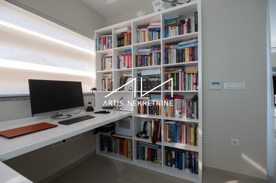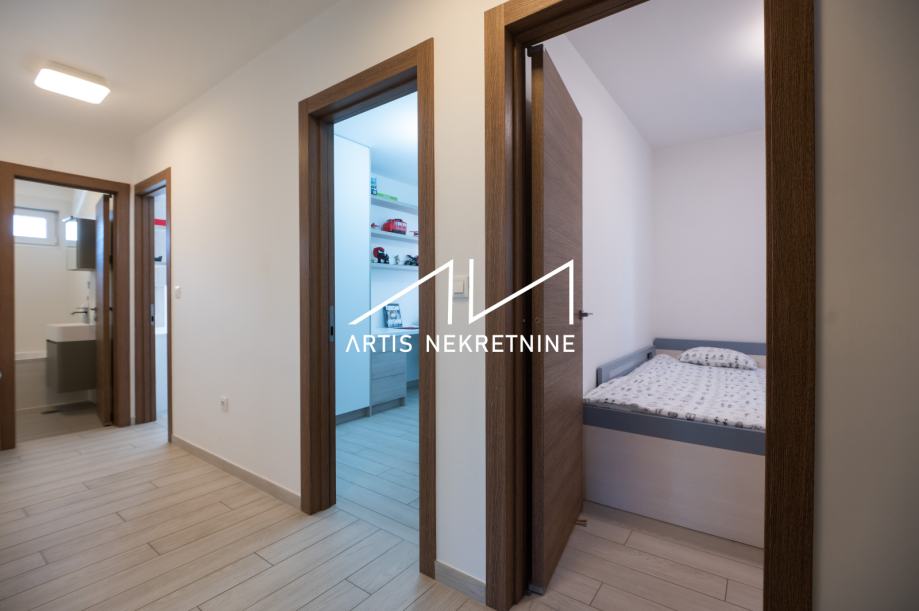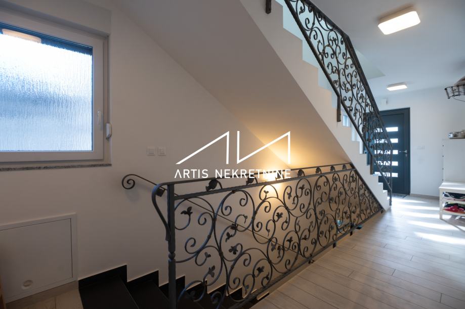 U podrumu se nalazi garaža za dva automobila, gospodarstvo, hodnik, priprema za lift. U prizemlju se nalaze 4 spavaće sobe (od koji jedna ima posebnu kupaonicu i garderobu - walk-in ormar), kupaonice, spremišta, pripreme lifta, ulaz, hodnik, lođa. Na katu se nalazi veliki dnevni boravak, kuhinja i blagovana, radna soba, wc, hodnik, priprema za lift, te velika lođa jugoistočne orijentacije. U potkrovlju kuće nalazi se skladišni prostor.