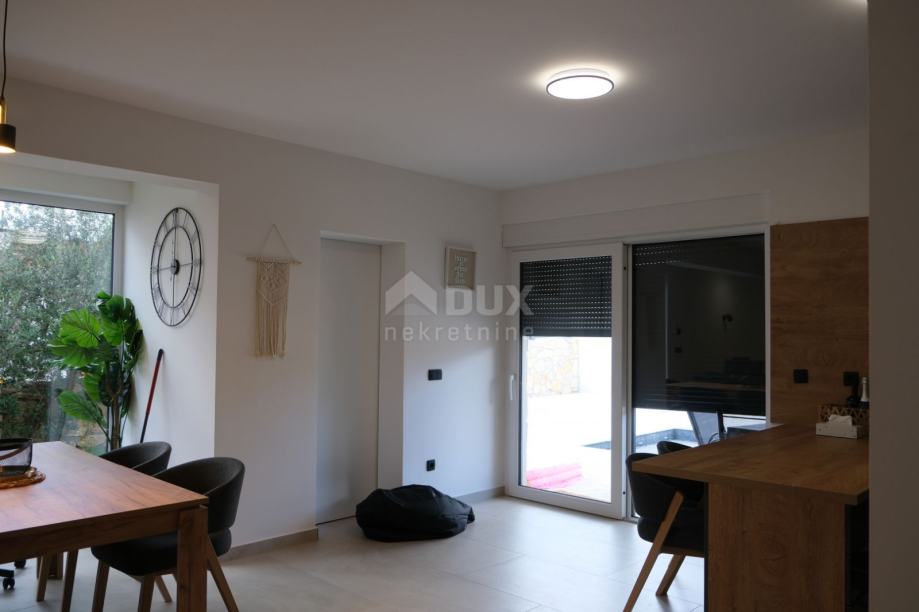 Vila ima četiri prostrane spavaće sobe i tri moderne kupaonice, pružajući dovoljno prostora za cijelu obitelj. Opremljena podnim grijanjem i klimom u cijeloj kući, osigurava udobnost tijekom cijele godine. Kuhinja i dnevni boravak su potpuno opremljeni i namješteni, spremni za useljenje odmah. Uz to, vila je opremljena elektro podiznim roletama, komarnicima, PVC stolarijom i aluminijskim kliznim stijenama, dodatno poboljšavajući kvalitetu života i udobnost.