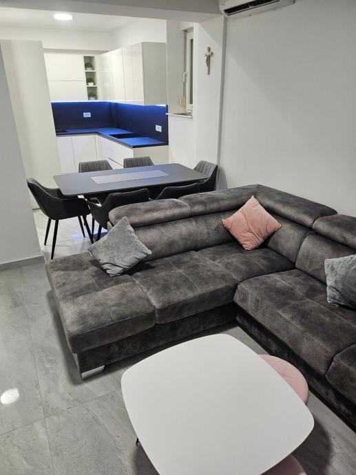 Stan je kompletno namješten, namještaj je nov vrhunske kvalitete, 90% namještaja je rađeno po mjeri te se stan prodaje takav.