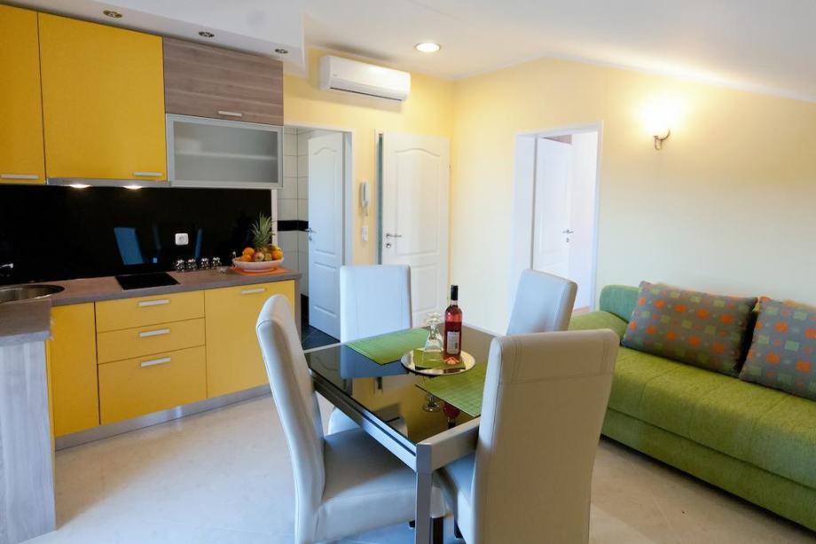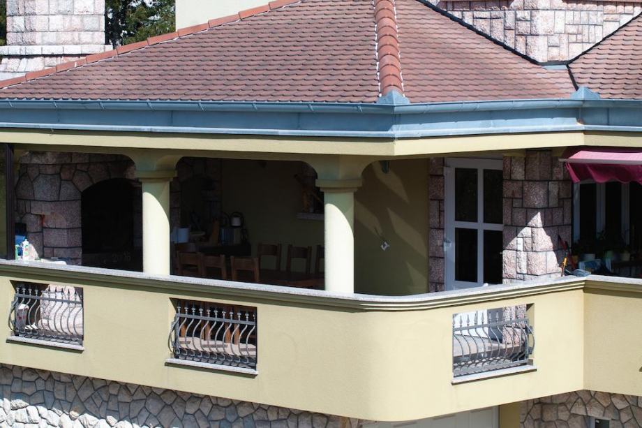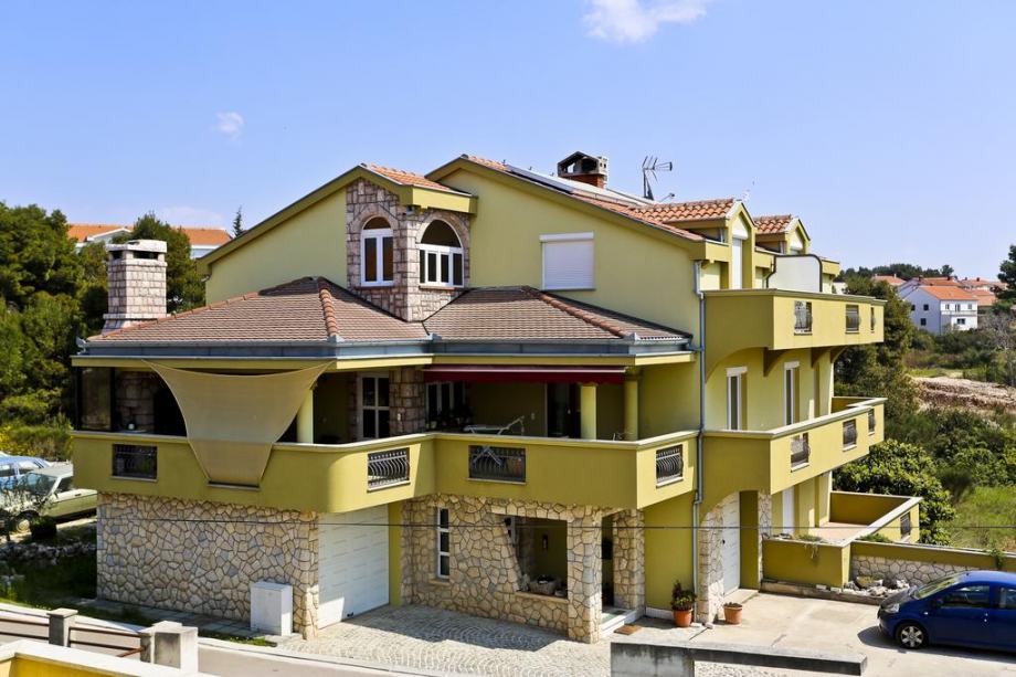Prodaje se atraktivna kuća na parceli od 500 m2. Kuća je na tri etaže,stambene površine od 550m2. Ima dvije garaže,podrum od 70m2 i dva grila. Prizemlje ima tri jednosobna, lijepo uređena apartmana,ostavu i dvije garaže. Prvi kat ima stan od 120m2 sa velikom terasom . Drugi kat ima dva jednosobna luksuzno uređena apartmana sa pogledom na more i sobu sa kupaonom. Kuća je klimatizirana i ima centralno grijanje. Udaljena je 700 metara od mora. U cijenu je uključen kompletan namještaj. Vlasništvo 1/1. Bez tereta. Cijena 1.300,000 €. Više informacija na upit.