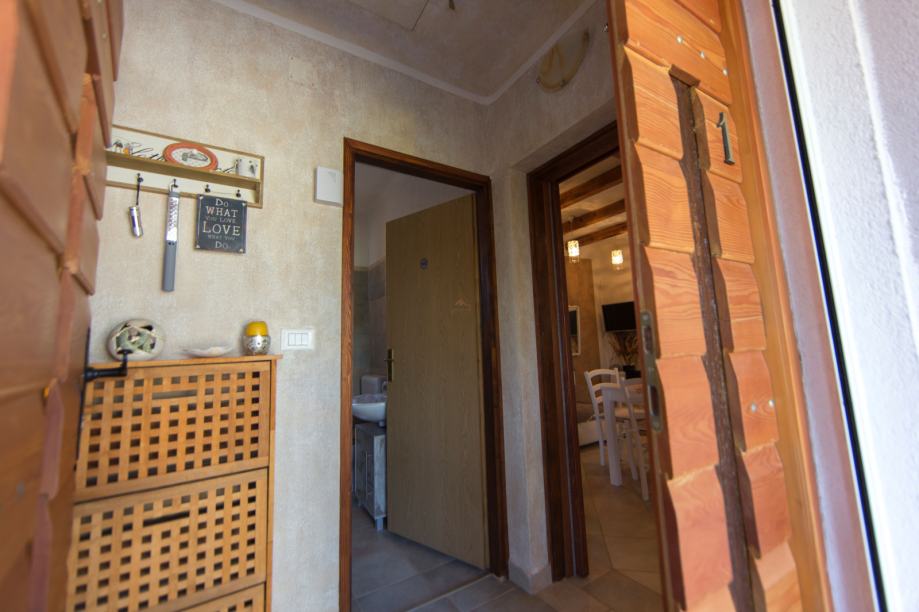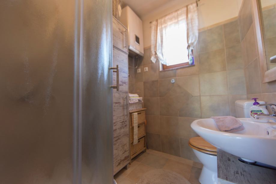 Prva kuća u površini od cca 50 m2 sastoji se od predsoblja, dvije spavaće sobe, kuhinje s blagovaonom i dnevnim dijelom, te kupaonice s WC-om.