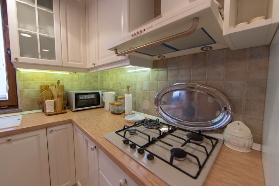 Iza kuće, daleko od pogleda okolnih susjeda i prometnice, smještena je ljetna kihinja sa kaminom, sprovedena struja, voda, prostran stol za obiteljska druženja na svježem zraku i stvaranju lijepih uspomena.