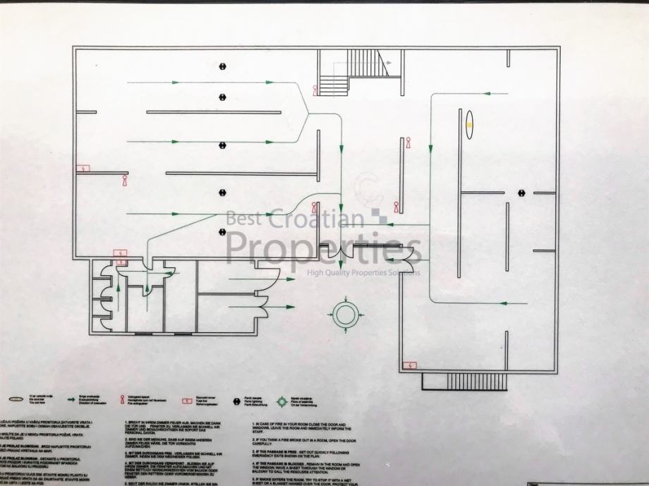Zgrada je veoma dobro održavana i sastoji se od prizemnog dijela (500m2) i kata (1200m2).