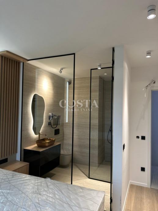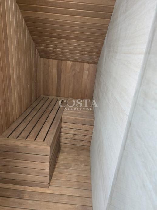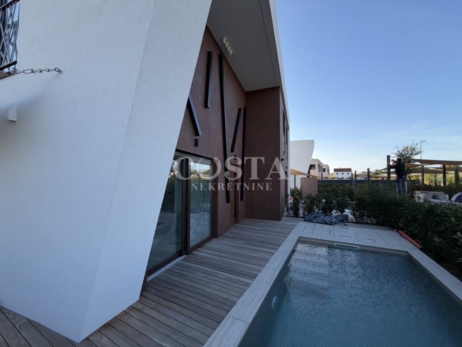 Prodaje se luksuzno uređen stan s bazenom u Ninu pokraj Zadra. Stan stambene površine 83,55 m2 se nalazi u manjoj stambenoj zgradi s četiri jedinica od kojih svaka ima vlastiti bazen i vrt. Svi stanovi su dvoetažni, sastoje se od prizemlja i kata. U prizemlju su smješteni dnevni boravak, kuhinja i blagovaonica, hodnik, wellness prostorija s finskom saunom i kupaonicom, a na katu su smještene spavaće sobe s pripadajućim kupaonicama. U dvorištu od 69,93 m2 se nalazi vrt, bazen i ljetna kuhinja te privatni parking s električnim punjenjem. Ukupna korisna površina stana zajedno s pripacima iznosi 165,98 m2 (K.V. 104,16 m2).
