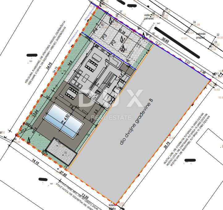 Na prodaju je moderna dvojna kuća na prekrasnoj lokaciji, udaljena svega 310 metara od mora, idealna za uživanje u luksuzu i privatnosti. Svaka jedinica ima vlastiti bazen i dvorište, objekt je u fazi gradnje , s planiranim dovršetkom do ljeta.