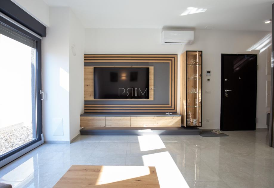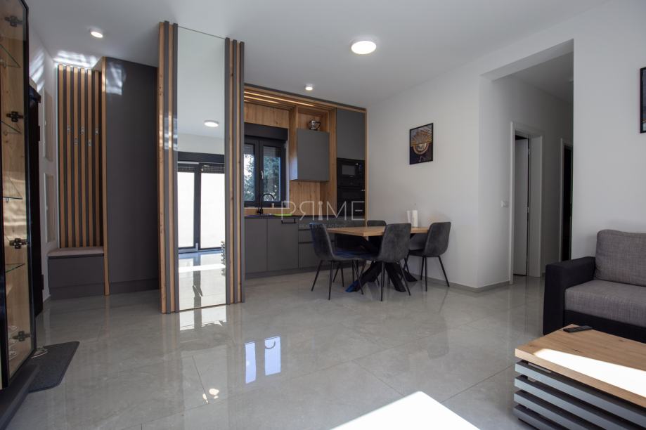 Stan površine 74 m2 ( tlocrtna površina stana s pripadcima je 134,75 m2) sastoji se od kuhinje, blagovaone, dnevnog boravka, kupaone i tri spavaće sobe. Pripadci stanu su vrt površine 41 m2, spremište u podrumu zgrade i dva vanjska parkirna mjesta. U izgradnji i opremanju su korišteni isključivo najkvalitetniji materijali od renomiranih proizvođača. Stan se prodaje kompletno namješten i opremljen ( kao na slikama, svi uređaji su pod garancijama). Prodavatelj je pravna osoba što znači da je kupac oslobođen poreza na promet nekretnina. Više informacija na upit!