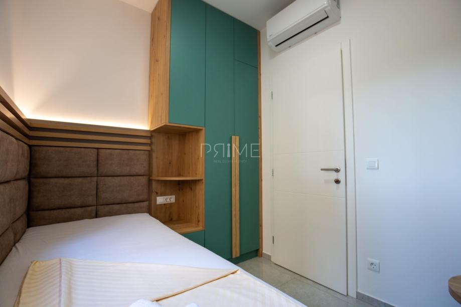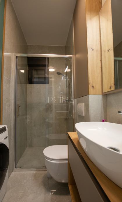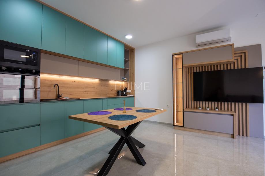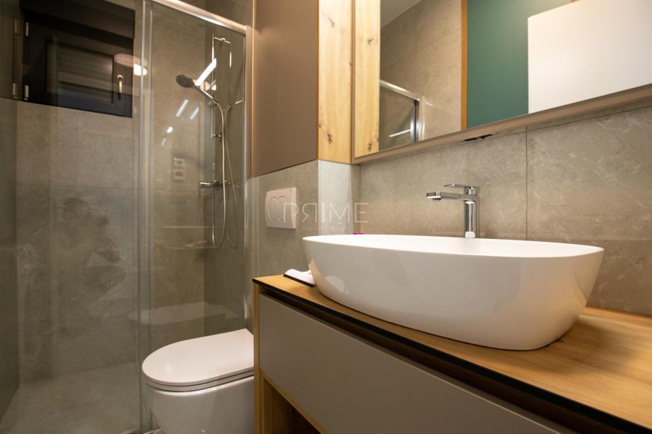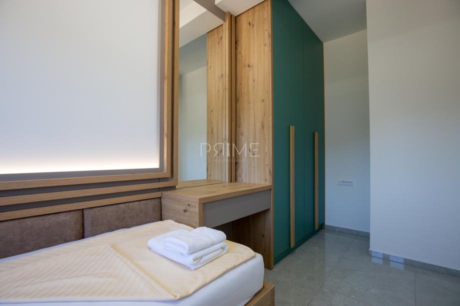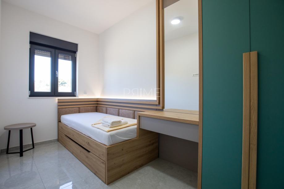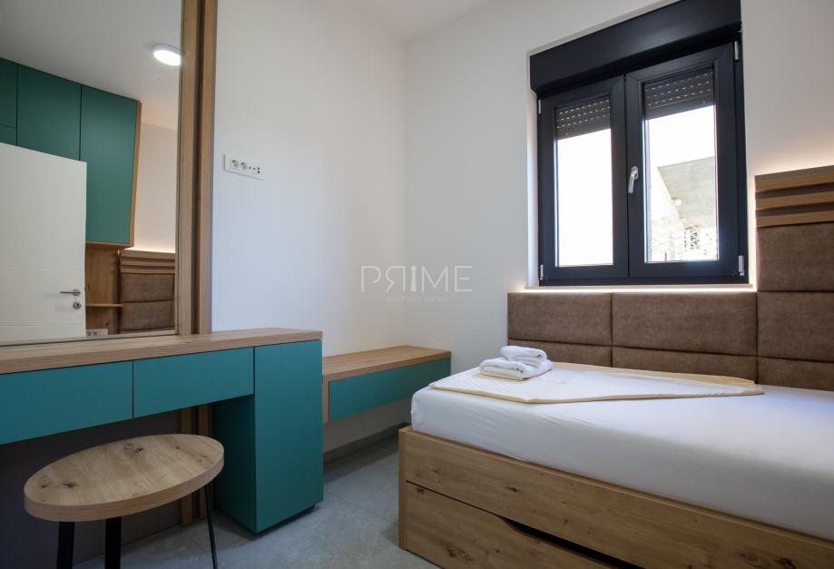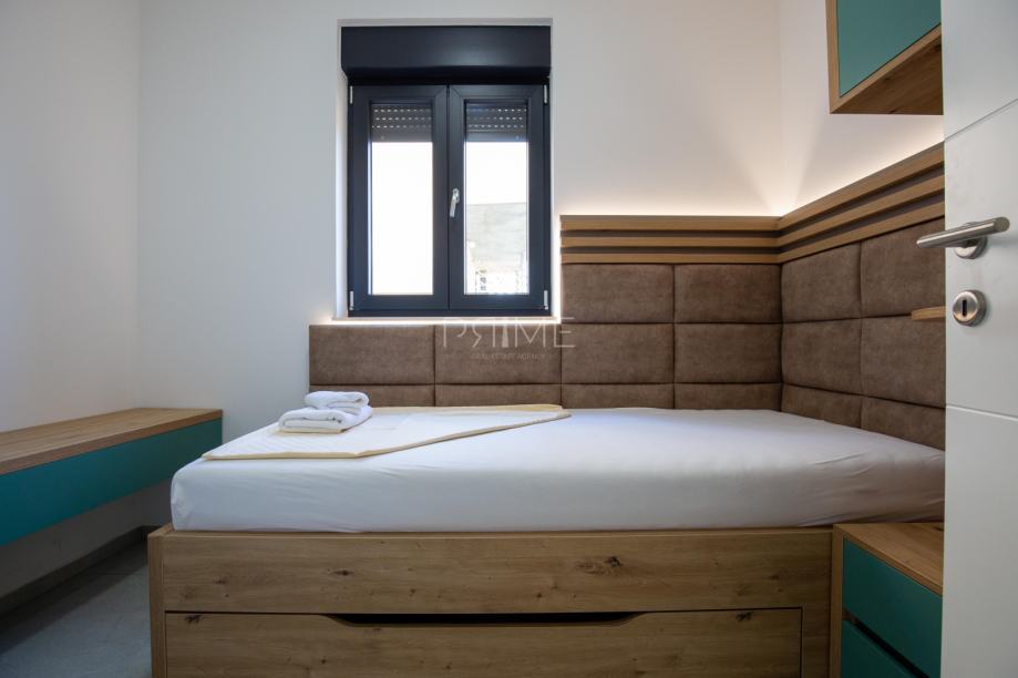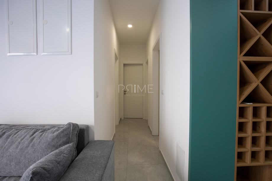 Stan površine 78,36 m2 ( tlocrtna površina stana s pripadcima je 172 m2) sastoji se od kuhinje, blagovaone, dnevnog boravka, kupaone i tri spavaće sobe. Pripadci stanu su vrt površine 77 m2, spremište u podrumu zgrade i dva vanjska parkirna mjesta. Stan je kompletno namješten i opremljen te se takav i prodaje ( kao na slikama, svi uređaji su pod garancijama). U izgradnji i opremanju su se koristili isključivo najkvalitetniji materijali od renomiranih preoizvođača. Prodavatelj je pravna osoba što znači da je kupac oslobođen poreza na promet nekretnina. Više informacija na upit!