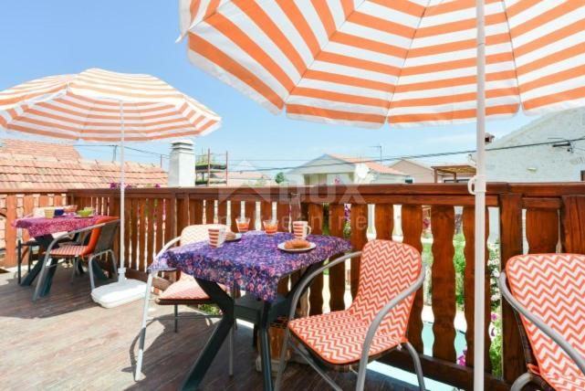 Prodaju se dvije dvojne kamene katnice u Arbanasima, s velikim dvorištem i bazenom. Stare kuće iz 1968. godine potpuno su obnovljene 2016. godine i uređene kao objekt za turizam. Stambenog prostora je 255 m2, a okućnice je 285m2. U prizemlju prve kuće nalazi se velika prostorija za prijateljska okupljanja, a na katu je jednosobni stan s malom terasom pred ulazom. U drugoj kući nalazi se pet jednosobnih apartmana – dva u prizemlju i tri na katu, u koje se ulazi sa zajedničke terase. Svi apartmani su klimatizirani, potpuno opremljeni i uspješno se iznajmljuju. Moguće je uređenje još dva manja apartmana. U dvorištu je zajednički roštilj i bazen. Kuće se nalaze svega nekoliko minuta hoda od autobusnog kolodvora, u blizini mora i plaže, a do centra grada može se doći pješke za 20 minuta.