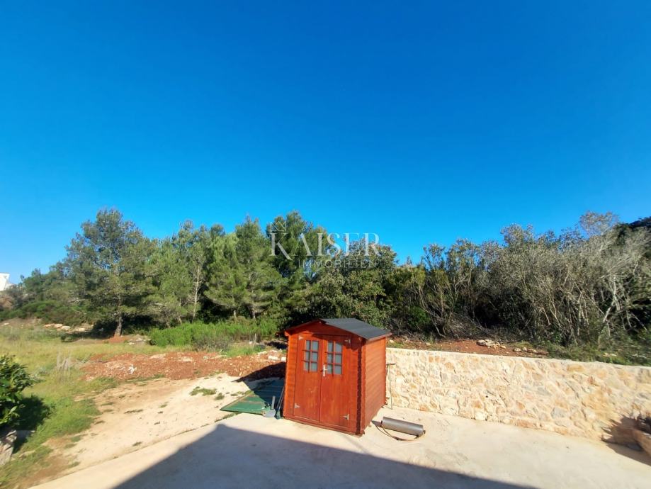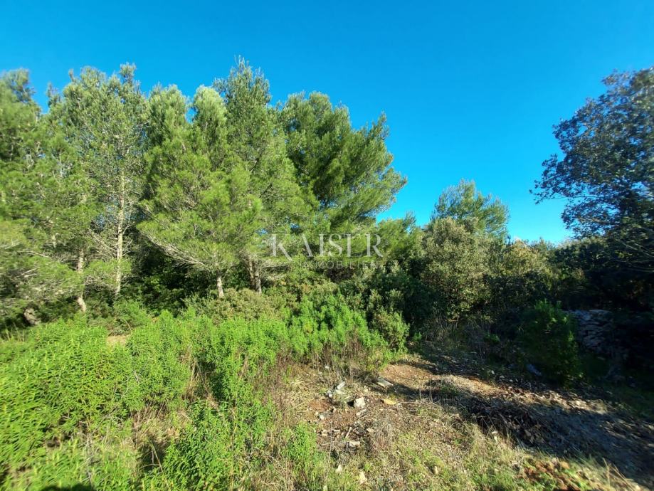 Zemljište je prekriveno mediteranskim grmljem i drvećem, spremno za uređenje po Vašim željama;