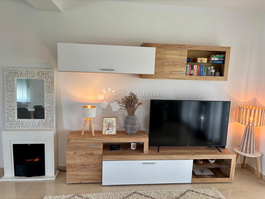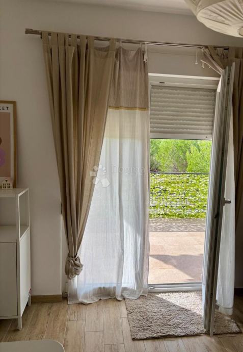 Posebnu vrijednost dodatno pružaju natkrivena terasa(5.75m2) i balkon(6.25m2) , te pripadajući uređeni vrt s vrtnom kućicom (18m2) – idealan prostor za odmor, druženje ili uživanje u mediteranskoj klimi. Dva parkirna mjesta (2x16m2) nalaze se neposredno uz pristup stanu, što svakodnevni boravak čini još praktičnijim.