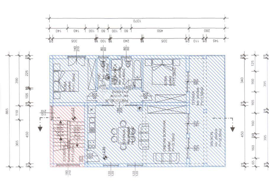 Unutrašnjost ovog uistinu ugodno osvijetljenog stana je pažljivo uređena kako bi zadovoljila potrebe suvremenog stanovanja. Otvoreni dnevni dio s kuhinjom i blagovaonicom povezuje funkcionalnost i udobnost, dok dvije spavaće sobe (2x11.39m2) omogućuju dovoljno privatnost i komoda. Kvalitetna izvedba vidljiva je u svim detaljima, uključujući podno grijanje u svim prostorijama, keramiku višeg standarda i uredno održavan interijer. Stan ima vlastiti ulaz, što osigurava dodatnu razinu privatnosti i jednostavnosti korištenja.