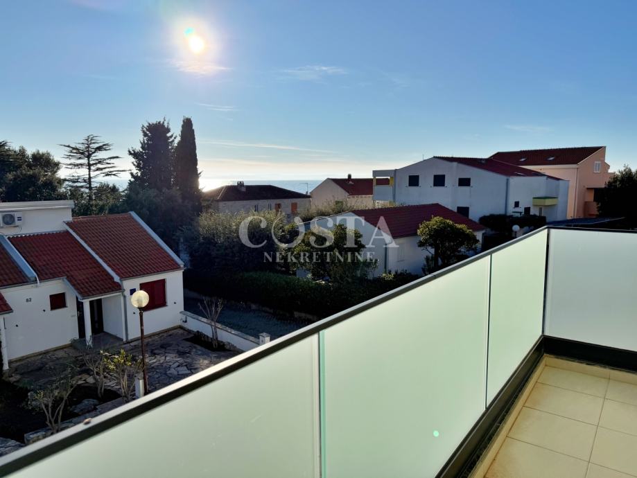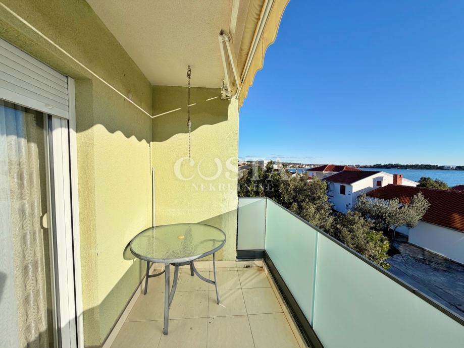 Prodaje se moderno uređen stan s pogledom na more u mjestu Petrčane pokraj Zadra. Stan površine 77,06 m2 nalazi se na prvom katu manje stambene zgrade sa šest jedinica. Sastoji se od prostranog dnevnog boravka, kuhinje i blagovaone, dvije spavaće sobe, dvije kupaonice i dva balkona. Stan je kompletno klimatiziran, a za podne obloge korišteni su visokokvalitetni parketi, stolarija je PVC. Stanu pripada i jedno parkirno mjesto u dvorištu zgrade.