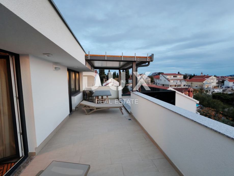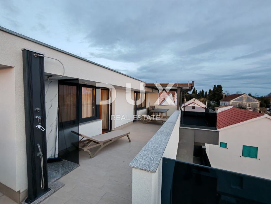 Na trećem i ujedno posljednjem katu nalazi se prostrani penthouse s dvije spavaće sobe, kupaonicom, dnevnim boravkom, kuhinjom i blagovaonicom, ukupne neto površine 88,54 m2. Ovaj penthouse se ističe s dvije ogromne terase s kojih se pruža veličanstven pogled na more i planinu Velebit. Stan je opremljen vrhunskim materijalima, klimatiziran je, ima dimnjak i električne rolete, te je potpuno namješten.