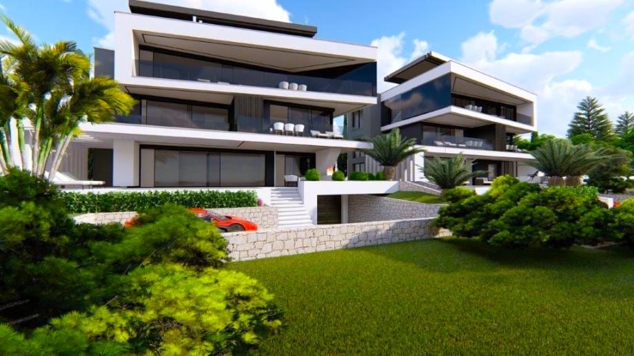 Stan se sastoji od ulaznog hodnika, prostranog dnevnog boravka spojenog staklenim stijenama sa balkonom, kuhinje i blagovaonice, ostave, 2 spavaće sobe i kupaonice. Stanu još pripada i spremište, garažno parkirno mjesto iz kojeg se liftom dolazi direktno u stan, te još jedno vanjsko parkirno mjesto.