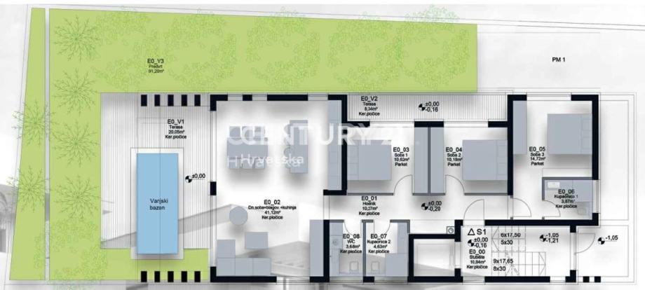 - dvije terase (21,17 m2, 8,34 m2)