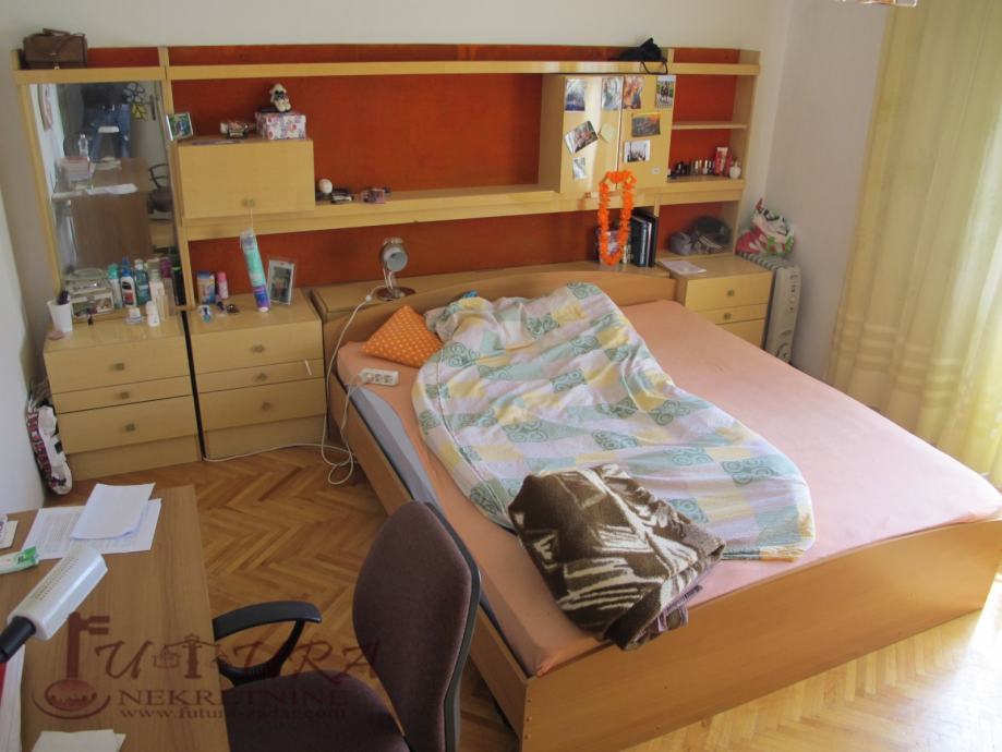Kat: tri spavaće sobe, kuhinja + blagovaona, kupaonica, wc i dva balkona.