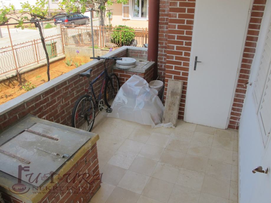 Prizemlje: tri spavaće sobe, kuhinja + blagovaona, kupaonica, dva wc-a i dva balkona.
